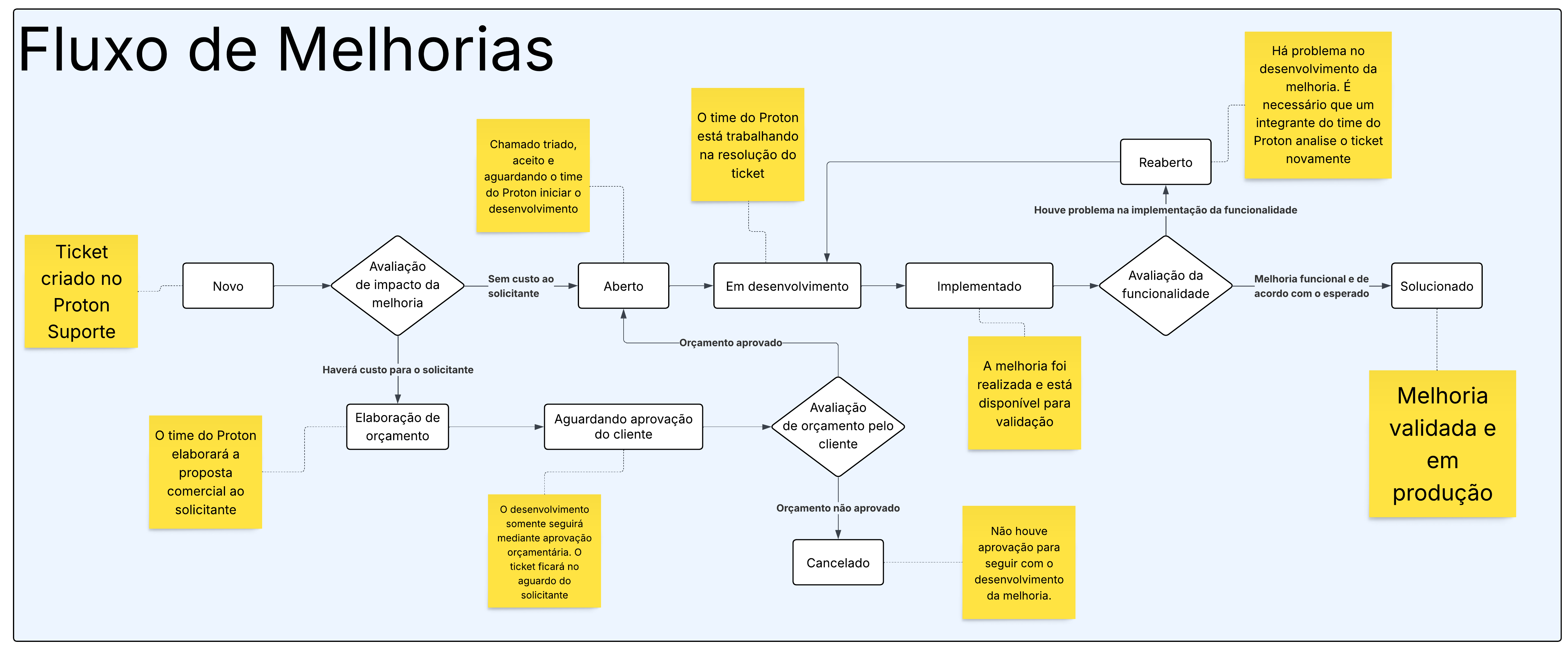 Há problema no desenvolvimento da melhoria. É necessário que um integrante do time do Proton analise o ticket novamente