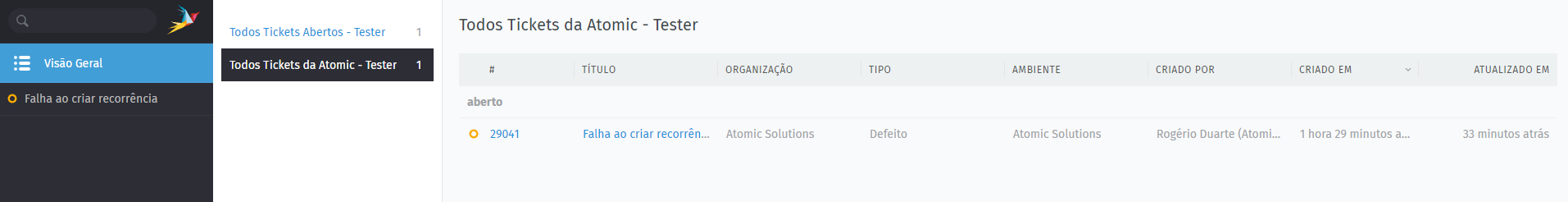 Ao fazer login, você verá automaticamente a lista dos seus chamados. É disponibilizado visões diferentes para cada tipo de usuário.